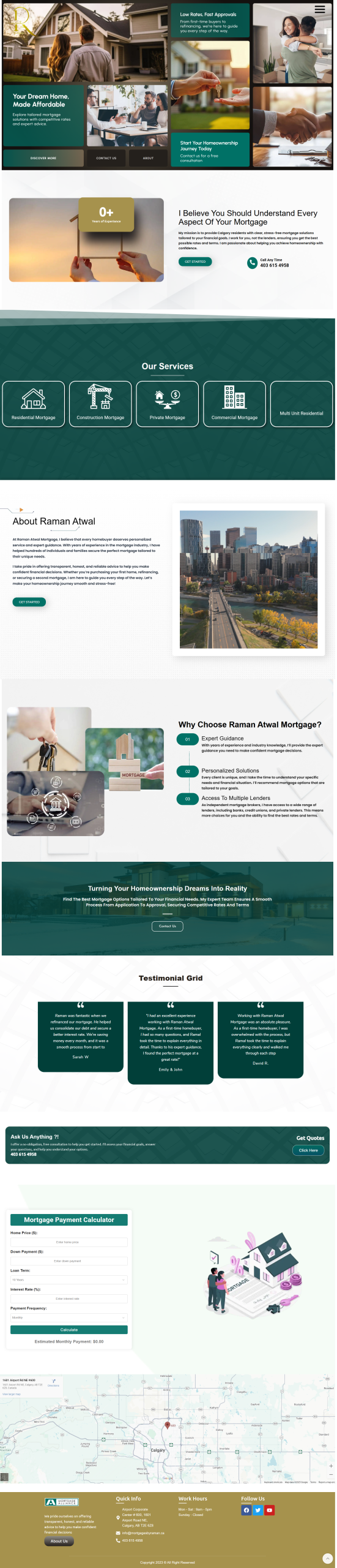 The website offers a comprehensive range of mortgage solutions, including residential mortgages for first-time homebuyers, mortgage refinancing, construction loans, commercial mortgages, and private lending options.With access to over 40 lenders, including banks, credit unions, and private institutions, Raman Atwal Mortgage ensures clients receive competitive rates and terms tailored to their unique financial situations.